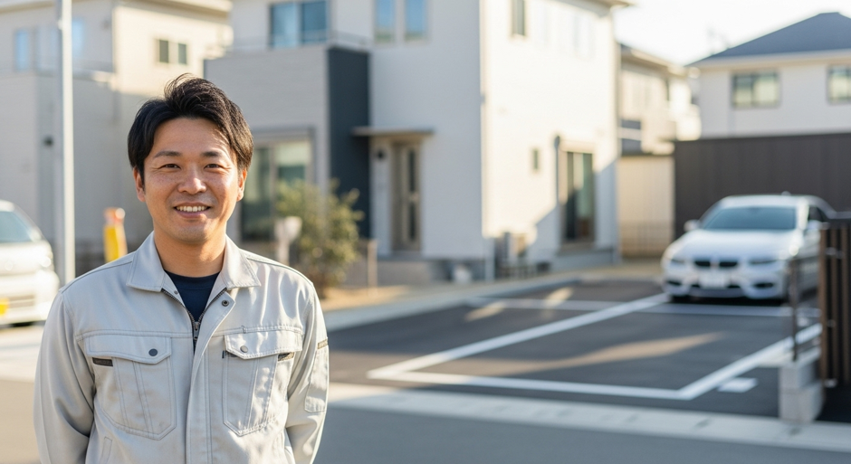 - プロ(業者)推奨のケース: 自動車の重量は1トンを超え、走行や据え切り(停止した状態でのハンドル操作)は舗装に非常に大きな負荷をかけます。そのため、新規で駐車場全体を舗装する場合や、大規模な劣化が進んでいる場合は、専門業者への依頼が不可欠です。業者は、適切な路盤(砕石層)の設計・造成を行い、高耐久な加熱合材を使用して、通常5cm以上の厚さで舗装します。これにより、長期的な耐久性と平坦性を確保します。